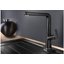 Внутри крана помещается шланг, который можно растянуть, чтобы достать струей воды до второй чаши мойки или тщательно сполоснуть посуду.