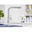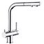 Специальная насадка позволяет выдвинуть излив как маленький шланг и направить струю в слишком высокую кастрюлю, которая не помещается под стационарным краном, на овощи в раковине, на загрязнения в неудобных уголках мойки, которые нужно удалить и т.д. Благодаря особой конструкции вы можете также направить воду из раковины в ванну или из одной чаши мойки в другую одним поворотом крана в нужную сторону. Дополнительная деталь, которая повышает комфорт использования, — аэратор. Он делает поток воды мягче, насыщая его кислородом, таким образом дополнительно уменьшая ее расход: объем струи увеличивается за счет воздуха, а не за счет повышения напора из водопровода. К этой модели можно подключить фильтр для питьевой воды.