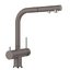 Рычаг для включения фильтрованной воды применяется в современных комбинированных смесителях, где из одного и того же излива подается и водопроводная, и питьевая вода. Такие смесители типа «два в одном» отличаются от обычных тем, что имеют не два подключения, а три, где третье соединяет смеситель с фильтром. Очищенная вода подается по изолированной трубке, проходящей внутри излива. Для удаления накипи, солей металлов, микроорганизмов и прочих вредных примесей могут применяться различные типы фильтров. Проточные фильтры устанавливаются под мойкой и включают несколько картриджей, которые необходимо менять по мере использования. С их помощью можно избавиться от таких примесей, как железо, хлор и многие другие. Устройства с системой обратного осмоса оснащаются диффузором, включающим картриджи для предварительной очистки и осмотическую мембрану, задерживающую практически все вредные примеси.