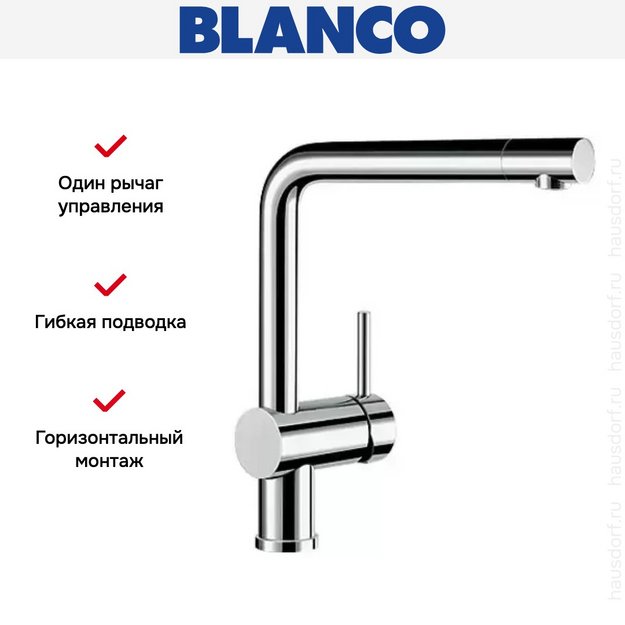 Смеситель LINUS — это единство стиля и функциональности. Лаконичный дизайн дополнен элегантным рычагом управления. Модель однорычажного типа можно включить или выключить одной рукой. Положение рычага управления можно выбрать в зависимости от ваших предпочтений: слева, справа или посередине. Керамический дисковый картридж обеспечивает отличное прилегание и самую точную регулировку напора воды. Строгая прямоугольная форма излива превосходно подойдет для интерьеров в стиле хай-тек или техно. Производитель предлагает несколько видов покрытия: из обычной и полированной нержавеющей стали, хромированное, керамическое, из искусственного камня. Высококачественная нержавеющая сталь отличается высокой прочностью, устойчивостью к температурным и химическим воздействиям, легко чистится, а ее внешний вид не ухудшается со временем. В комплект входят гибкие присоединительные шланги. Продукция фирмы Blanco отмечена сертификатом DVGW, подтверждающим высокий уровень качества, надежности и экологической безопасности всех материалов.