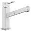 Специальная насадка позволяет выдвинуть излив как маленький шланг и направить струю в слишком высокую кастрюлю, которая не помещается под стационарным краном, на овощи в раковине, на загрязнения в неудобных уголках мойки, которые нужно удалить и т.д. Благодаря особой конструкции вы можете также направить воду из раковины в ванну или из одной чаши мойки в другую одним поворотом крана в нужную сторону. Дополнительная деталь, которая повышает комфорт использования, — аэратор. Он делает поток воды мягче, насыщая его кислородом, таким образом дополнительно уменьшая ее расход: объем струи увеличивается за счет воздуха, а не за счет повышения напора из водопровода.