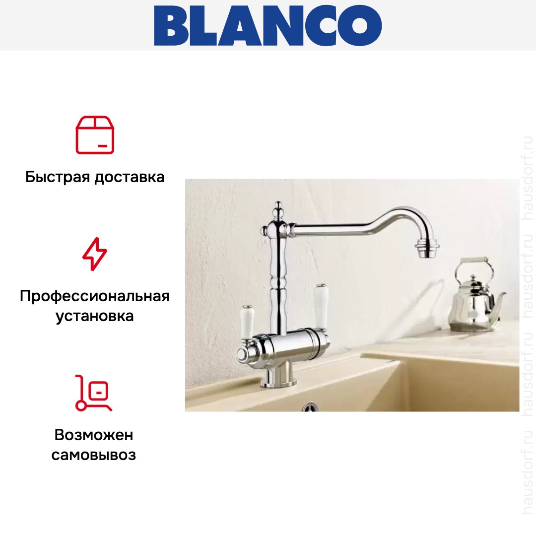 Смеситель SORA — изысканная модель от Blanco. Классический дизайн подходит для интерьеров в стиле ретро или кантри. Модель сочетает элегантные формы и широкий функционал. К изделию можно подключить фильтр, для которого предусмотрен отдельный рычаг управления. Ручки обладают плавным ходом для комфортной и точной регулировки мощности потока. Хромированная поверхность устойчива к высоким температурам, не боится известкового налета и коррозии.