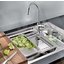 Внутри крана помещается шланг, который можно растянуть, чтобы достать струей воды до второй чаши мойки или тщательно сполоснуть посуду.