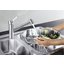 Внутри крана помещается шланг, который можно растянуть, чтобы достать струей воды до второй чаши мойки или тщательно сполоснуть посуду.