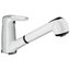 Внутри крана помещается шланг, который можно растянуть, чтобы достать струей воды до второй чаши мойки или тщательно сполоснуть посуду.