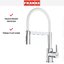 Внутри крана помещается шланг, который можно растянуть, чтобы достать струей воды до второй чаши мойки или тщательно сполоснуть посуду.