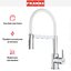 Выдвижной излив в кухонном смесителе — это гибкая трубка из резины в металлической оплетке, расположенная внутри основного излива. Для того, чтобы воспользоваться гибким изливом — например, наполнить высокую посуду, — достаточно включить воду и потянуть за головку, находящуюся на конце трубки.