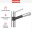 Внутри крана помещается шланг, который можно растянуть, чтобы достать струей воды до второй чаши мойки или тщательно сполоснуть посуду.