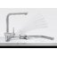 Специальная насадка позволяет выдвинуть излив как маленький шланг и направить струю в слишком высокую кастрюлю, которая не помещается под стационарным краном, на овощи в раковине, на загрязнения в неудобных уголках мойки, которые нужно удалить и т.д. Благодаря особой конструкции вы можете также направить воду из раковины в ванну или из одной чаши мойки в другую одним поворотом крана в нужную сторону. Дополнительная деталь, которая повышает комфорт использования, — аэратор. Он делает поток воды мягче, насыщая его кислородом, таким образом дополнительно уменьшая ее расход: объем струи увеличивается за счет воздуха, а не за счет повышения напора из водопровода.
