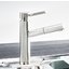 Внутри крана помещается шланг, который можно растянуть, чтобы достать струей воды до второй чаши мойки или тщательно сполоснуть посуду.