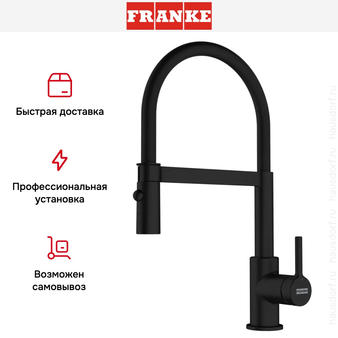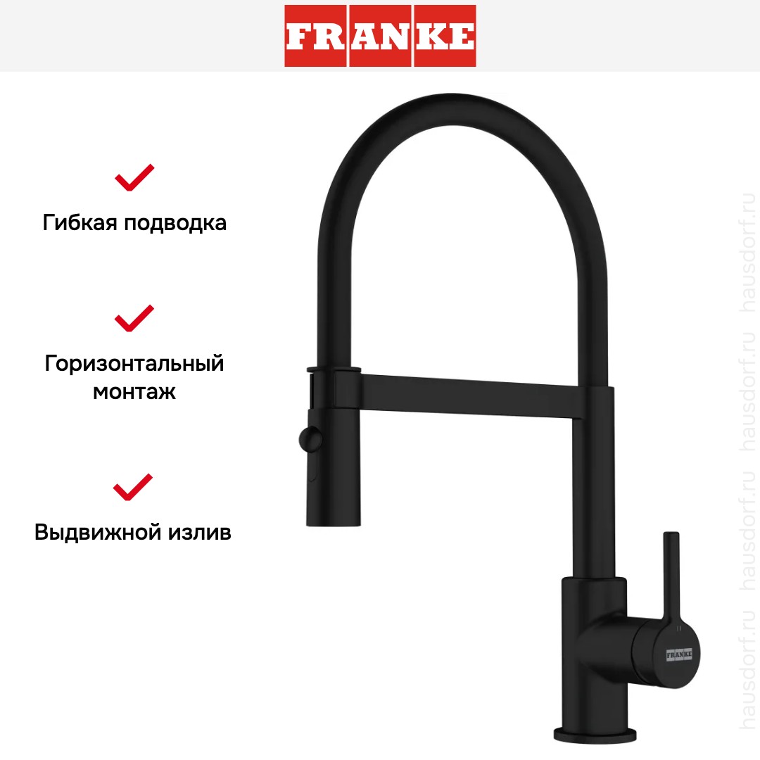 Смеситель Franke Lina Semi-pro с выдвижным шлангом черный матовый в Новосибирске