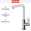 Практика использования упрощается за счёт выдвижного излива и поворотного механизма на 360 градусов. Выдвижной шланг позволяет добраться в труднодоступные углы раковины и удобно ополаскивать крупную посуду. Полный круг поворота делает устройство подходящим для раковин с двумя чашами и позволяет свободно направлять поток туда, где он нужен. Длина излива 21.8 см обеспечивает оптимальный вылет над чашей, облегчая наполнения сосудов и выполнение кухонных задач.