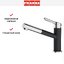 Внутри крана помещается шланг, который можно растянуть, чтобы достать струей воды до второй чаши мойки или тщательно сполоснуть посуду.