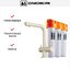 За управление отвечает двухрычажная схема: отдельные рукоятки для холодной и горячей воды позволяют быстро выставить нужную температуру и напор. Для питьевой системы предусмотрен свой орган управления — выделенный рычаг. Подключение фильтра предусмотрено конструкцией, поэтому обычная и очищенная вода подаются из одного корпуса без дополнительного краника. Поворотный излив облегчает работу со смежными зонами: можно повернуть струю к сушилке, ополоснуть противень или наполнить высокую тару. Аэратор формирует ровный поток — он мягче для овощей и фруктов и меньше разбрызгивает воду по рабочей поверхности.