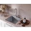 Длиной излива называется расстояние по горизонтали от основания смесителя до точки в раковине, куда падает струя воды. Учитывать длину при выборе смесителя и мойки так же важно, как и высоту. Основной фактор выбора: струя должна попадать в середину раковины, а не на одну из боковых поверхностей, чтобы не забрызгать столешницу и рядом стоящую бытовую технику. В идеале она должна попадать прямо на сливное отверстие, в крайнем случае место падения должно располагаться между сливным отверстием и передней стенкой. При этом нужно учитывать угол, под которым падает струя, а также расстояние от основания смесителя до ближайшей стенки раковины. Проводить измерения следует при максимальном напоре воды.