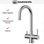 Рычаг для включения фильтрованной воды применяется в современных комбинированных смесителях, где из одного и того же излива подается и водопроводная, и питьевая вода. Такие смесители типа «два в одном» отличаются от обычных тем, что имеют не два подключения, а три, где третье соединяет смеситель с фильтром. Очищенная вода подается по изолированной трубке, проходящей внутри излива. Для удаления накипи, солей металлов, микроорганизмов и прочих вредных примесей могут применяться различные типы фильтров. Проточные фильтры устанавливаются под мойкой и включают несколько картриджей, которые необходимо менять по мере использования. С их помощью можно избавиться от таких примесей, как железо, хлор и многие другие. Устройства с системой обратного осмоса оснащаются диффузором, включающим картриджи для предварительной очистки и осмотическую мембрану, задерживающую практически все вредные примеси.