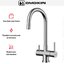 Для подачи чистой воды смесители могут оснащаться единственным рычагом, при помощи которого производится переключение на фильтр. Этот же рычаг регулирует напор и температуру водопроводной воды. Чаще на изливе имеются два рычага, один из которых отвечает только за включение фильтрованной воды.
