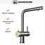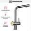 Для подачи чистой воды смесители могут оснащаться единственным рычагом, при помощи которого производится переключение на фильтр. Этот же рычаг регулирует напор и температуру водопроводной воды. Чаще на изливе имеются два рычага, один из которых отвечает только за включение фильтрованной воды.