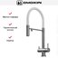 Для подачи чистой воды смесители могут оснащаться единственным рычагом, при помощи которого производится переключение на фильтр. Этот же рычаг регулирует напор и температуру водопроводной воды. Чаще на изливе имеются два рычага, один из которых отвечает только за включение фильтрованной воды.