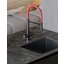 Высота излива — один из важнейших параметров, которые необходимо учитывать при выборе кухонного смесителя. Высотой называется расстояние от поверхности, на которой установлен смеситель, до его носика, то есть это, по сути, длина струи воды. Подбирать модель по высоте следует так, чтобы в раковину без труда помещались любые емкости, которыми вы пользуетесь, включая большие кастрюли и высокие вазы, а вода при ударе о дно раковины не разбрызгивалась во все стороны. Чем больше высота излива, тем глубже должна быть раковина.