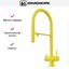 По высоте все смесители можно разделить на три группы: низкие, средние и высокие. Низкие обычно имеют один вентиль, а средние и высокие — по два. Высота низких смесителей составляет около 10-12 см, их выбирают для небольшой мойки глубиной около 120-140 мм и чаще устанавливают в ванной, чем в кухне. Кухонные модели могут дополняться выдвижными шлангами и поворотным изливом. Высота средних смесителей варьируется в пределах от 15 до 25 см: за стандартный принят размер 22 см. Они могут крепиться к мойке или к стене и подойдут для раковин глубиной около 170 мм. Для больших раковин глубиной более 20 см подойдут высокие изливы — от 25 до 50 см: они наиболее удобны, но требуют больше места.