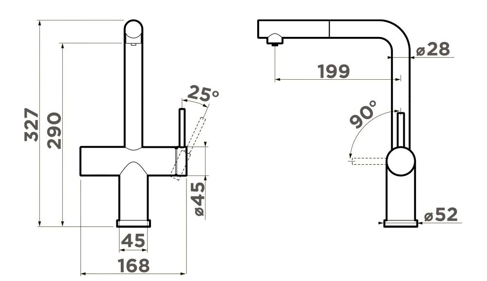 Специальная насадка позволяет выдвинуть излив как маленький шланг и направить струю в слишком высокую кастрюлю, которая не помещается под стационарным краном, на овощи в раковине, на загрязнения в неудобных уголках мойки, которые нужно удалить и т.д. Дополнительная деталь, которая повышает комфорт использования, — аэратор. Он делает поток воды мягче, насыщая его кислородом, таким образом дополнительно уменьшая ее расход: объем струи увеличивается за счет воздуха, а не за счет повышения напора из водопровода. К этой модели можно подключить фильтр для питьевой воды.