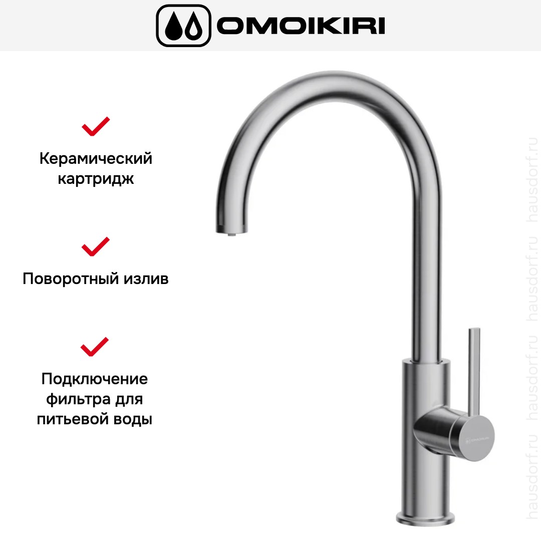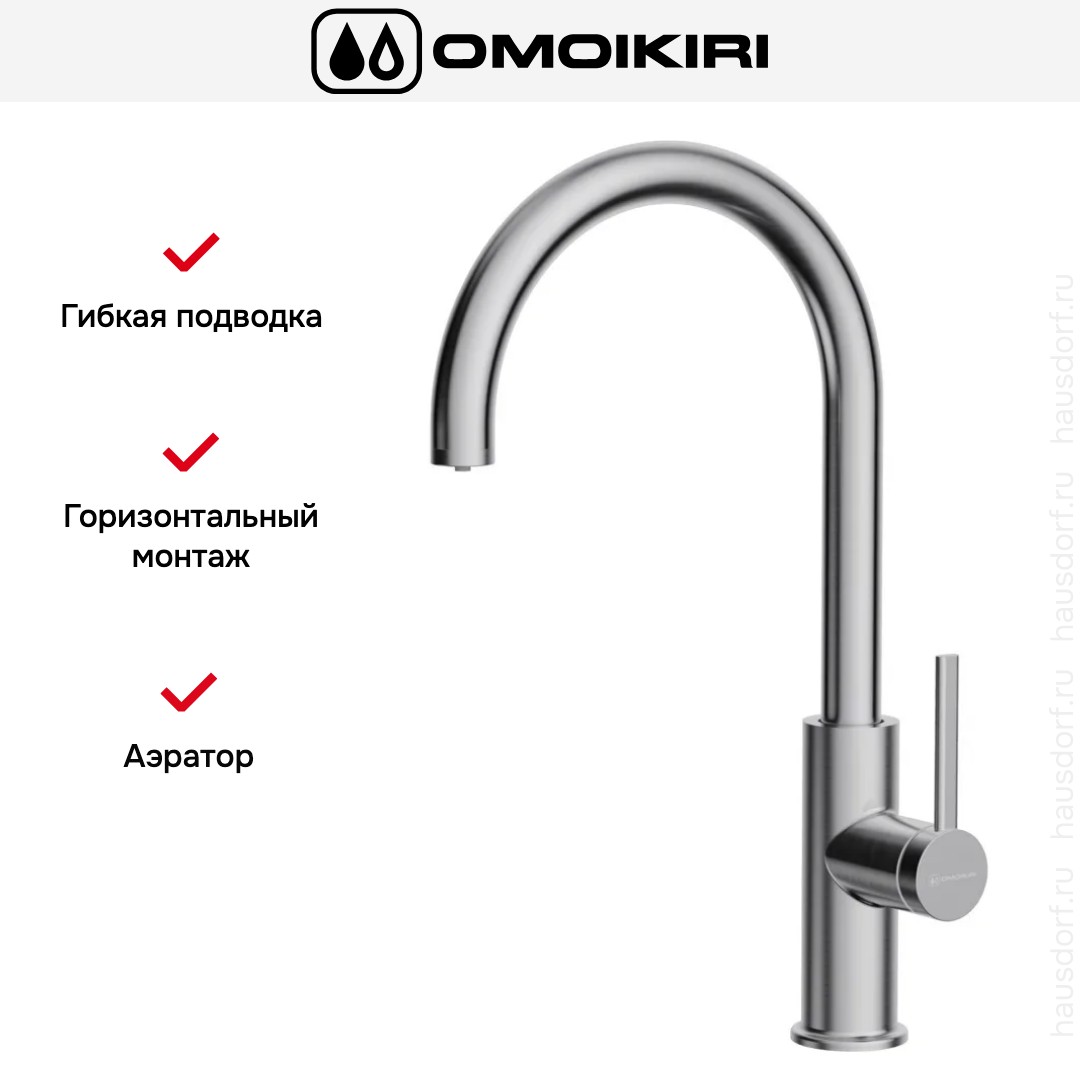 OMOIKIRI Okawa 2 Plus BN Представленная модель выделяется выразительной лаконичностью корпуса и утончённым металлическим финишем, который легко впишется в современную кухонную схему за счёт натурального оттенка нержавеющей стали и аккуратных пропорций; высокий излив высотой 28 см обеспечивает удобство при мытье габаритной посуды и наполнении глубоких ёмкостей, а длина носика 21.5 см гарантирует комфортный доступ к центру мойки при минимальном захлёсте; продуманная форма и гладкие линии сочетаются с практичностью: поверхность довольно устойчива к следам и легко очищается, что сохраняет презентабельный вид без сложного ухода. Конструкция однорычажного управления обеспечивает плавную регулировку потока и температуры, а применение керамического картриджа диаметром 35 мм повышает долговечность механизма и снижает риск протечек; запорный элемент работает чётко и без заеданий, поэтому эксплуатация остаётся простой и надёжной даже при интенсивной загрузке. Излив вращается на 360°, что расширяет рабочую зону и позволяет направлять струю в разные секции двойной мойки, а интегрированный аэратор делает струю более мягкой, экономичной и защищённой от брызг, сохраняя при этом рабочее давление. Важная функциональная особенность — возможность подключения фильтра для питьевой воды и наличие мульти-рычага для подачи очищенной жидкости: решение 2in1 MULTI позволяет переключаться между обычной и фильтрованной подачей одним движением, что удобно для приготовления еды и питья, а отдельный режим уменьшает риск смешивания потоков. Монтаж выполняется горизонтально, с гибкими присоединительными шлангами, что упрощает установку и даёт свободу компоновки пространства под мойкой; тип подводки гибкий, поэтому подключение к существующим коммуникациям не потребует дополнительных переходников. Общие габариты 10.9×42 см и высота 420 мм делают изделие заметным, но при этом компактным решением для различных планировок: оно не займёт лишнего места на рабочей поверхности и вместе с тем обеспечит высокий запас свободного пространства под краном. Материал исполнения — нержавеющая сталь — гарантирует устойчивость к коррозии и механическим воздействиям, а аккуратная отделка подчёркивает техническую эстетику и служит хорошим фоном для разнообразных кухонных интерьеров. Для пользователей, ценящих эргономику, удобство переключения режимов и качественные материалы, этот вариант станет удачной покупкой, поскольку сочетает в себе прочную основу, универсальный функционал и современную визуальную привлекательность; дополнительно изделие хорошо подходит к разным типам моек и легко интегрируется в системы с фильтрующим оборудованием, оставаясь при этом понятным в управлении и надёжным по эксплуатационным характеристикам. Omoikiri смесители демонстрируют баланс формы и практичности, обеспечивая комфортные условия для ежедневных задач на кухне.