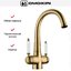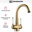 Смеситель с подключением к фильтру для воды — современная модель, которая облегчает быт. Вместо двух соединений с водопроводом у таких вариантов их три, а трубка, по которой идет отфильтрованная вода, находится внутри крана. Чуть дальше основного отверстия, через которое подается поток в раковину, расположено отверстие поменьше — для питьевой воды.