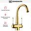 Смеситель с подключением к фильтру для воды — современная модель, которая облегчает быт. Вместо двух соединений с водопроводом у таких вариантов их три, а трубка, по которой идет отфильтрованная вода, находится внутри крана. Чуть дальше основного отверстия, через которое подается поток в раковину, расположено отверстие поменьше — для питьевой воды.