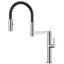 Для использования режима душа смесители оснащаются, как правило, выдвижным изливом, который имеет насадку-душ. В конструкцию у них добавляется элемент, который способен переключать направление струи с обычного излива на гибкий. Отдельный гибкий шланг вытягивается наружу за эту насадку из корпуса излива. Длина его может составить до 1,5 м, что поможет также вымыть все уголки раковины и наполнить емкости любого размера. Кроме смесителей с одним выдвижным изливом , производители предлагают полупрофессиональные модели с двумя изливами.