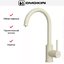 Корпус изготовлен из латуни — материал придает конструкции монолитность и уверенную посадку. Поверхность ванильного цвета выглядит мягко и благородно, сочетается как со светлыми, так и с контрастными столешницами. Визуально форма остаётся легкой, при этом кран ощущается основательно и устойчиво.