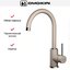 По высоте все смесители можно разделить на три группы: низкие, средние и высокие. Низкие обычно имеют один вентиль, а средние и высокие — по два. Высота низких смесителей составляет около 10-12 см, их выбирают для небольшой мойки глубиной около 120-140 мм и чаще устанавливают в ванной, чем в кухне. Кухонные модели могут дополняться выдвижными шлангами и поворотным изливом. Высота средних смесителей варьируется в пределах от 15 до 25 см: за стандартный принят размер 22 см. Они могут крепиться к мойке или к стене и подойдут для раковин глубиной около 170 мм. Для больших раковин глубиной более 20 см подойдут высокие изливы — от 25 до 50 см: они наиболее удобны, но требуют больше места.