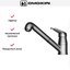 Внутри крана помещается шланг, который можно растянуть, чтобы достать струей воды до второй чаши мойки или тщательно сполоснуть посуду.