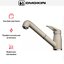 Внутри крана помещается шланг, который можно растянуть, чтобы достать струей воды до второй чаши мойки или тщательно сполоснуть посуду.