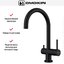 Высота излива — один из важнейших параметров, которые необходимо учитывать при выборе кухонного смесителя. Высотой называется расстояние от поверхности, на которой установлен смеситель, до его носика, то есть это, по сути, длина струи воды. Подбирать модель по высоте следует так, чтобы в раковину без труда помещались любые емкости, которыми вы пользуетесь, включая большие кастрюли и высокие вазы, а вода при ударе о дно раковины не разбрызгивалась во все стороны. Чем больше высота излива, тем глубже должна быть раковина.