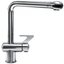 Однорычажный смеситель от Smeg. Покрытие смесителя из нержавеющей стали имеет зеркальную полировку, которая защищает смеситель от образования коррозии, и соответствует стилям «Piano Design» и «Evoluzione». Угол поворота излива на 170 градусов обеспечивает комфортную работу смесителя даже для мойки с двумя чашами.