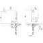 Длиной излива называется расстояние по горизонтали от основания смесителя до точки в раковине, куда падает струя воды. Учитывать длину при выборе смесителя и мойки так же важно, как и высоту. Основной фактор выбора: струя должна попадать в середину раковины, а не на одну из боковых поверхностей, чтобы не забрызгать столешницу и рядом стоящую бытовую технику. В идеале она должна попадать прямо на сливное отверстие, в крайнем случае место падения должно располагаться между сливным отверстием и передней стенкой. При этом нужно учитывать угол, под которым падает струя, а также расстояние от основания смесителя до ближайшей стенки раковины. Проводить измерения следует при максимальном напоре воды.