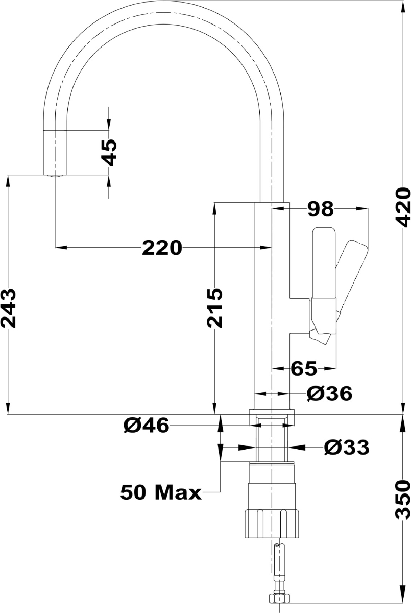 Высота излива — один из важнейших параметров, которые необходимо учитывать при выборе кухонного смесителя. Высотой называется расстояние от поверхности, на которой установлен смеситель, до его носика, то есть это, по сути, длина струи воды. Подбирать модель по высоте следует так, чтобы в раковину без труда помещались любые емкости, которыми вы пользуетесь, включая большие кастрюли и высокие вазы, а вода при ударе о дно раковины не разбрызгивалась во все стороны. Чем больше высота излива, тем глубже должна быть раковина.