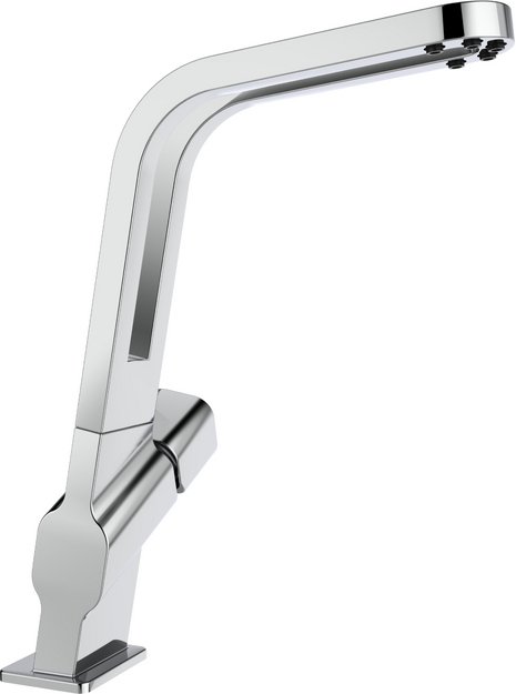 По высоте все смесители можно разделить на три группы: низкие, средние и высокие. Низкие обычно имеют один вентиль, а средние и высокие — по два. Высота низких смесителей составляет около 10-12 см, их выбирают для небольшой мойки глубиной около 120-140 мм и чаще устанавливают в ванной, чем в кухне. Кухонные модели могут дополняться выдвижными шлангами и поворотным изливом. Высота средних смесителей варьируется в пределах от 15 до 25 см: за стандартный принят размер 22 см. Они могут крепиться к мойке или к стене и подойдут для раковин глубиной около 170 мм. Для больших раковин глубиной более 20 см подойдут высокие изливы — от 25 до 50 см: они наиболее удобны, но требуют больше места.