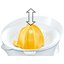 Соковыжималка для цитрусовых позволяет получить сок из лимонов, лаймов, апельсинов. Их достаточно разрезать пополам, поместить разрезом вниз на ребристый конус-наконечник и удерживать вручную или с помощью пресса. При включении прибора конус вращается, сок отжимается и стекает в контейнер.
