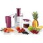 Универсальные соковыжималки позволяют получить сок из любых фруктов и овощей. Продукты в них измельчаются при помощи вращающейся терки в кашицу, которая обрабатывается в центрифуге, где мякоть отделяется от жидкости под действием центробежной силы, и сок сливается о специальный контейнер.