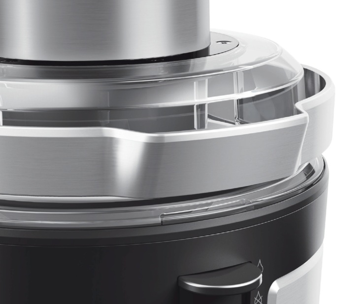 Практичные решения повышают удобство ежедневного использования. Ёмкость для сока 1.5 л и дополнительный контейнер на 1 л позволяют готовить напиток сразу для всей семьи без частых перерывов. Съёмный контейнер для мякоти объёмом 3 л и автоматический выброс мякоти освобождают от постоянной остановки при переработке большого количества плодов. Сепаратор для пены делает напиток прозрачнее и приятнее на вкус.