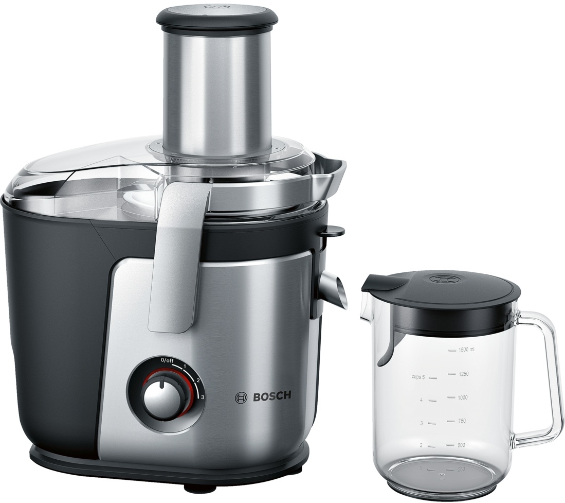 Соковыжималка Bosch MES4010 представляет собой стильный прибор, дизайн которого сочетает черный пластик и вставки из нержавеющей стали. Он не займёт много места благодаря габаритам 42.5×32.2×22.1 см. Нержавеющая сталь придаёт корпусу прочность и гигиеничность, а пластик снижает общий вес до 5.9 кг, что облегчает перемещение и хранение.