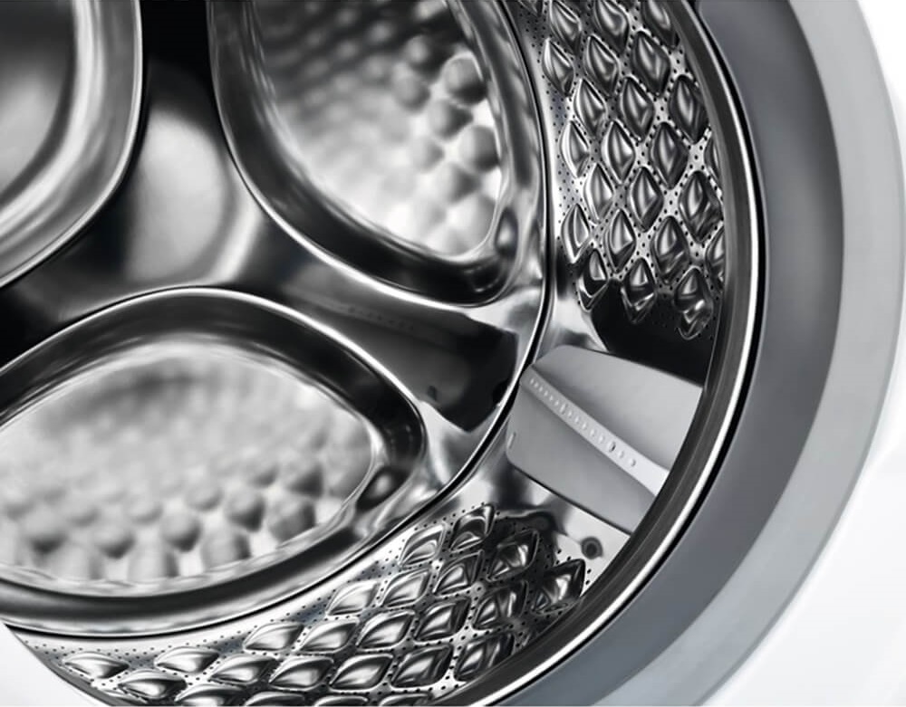 Система шумоизоляции включает в себя несколько составляющих. Прежде всего это инновационный трехфазный двигатель, отличающийся высокой эффективностью и экономичностью. Кроме того, корпус защищают специальные звукоизолирующие панели и прокладки толщиной до 2 см: они также препятствуют возникновению вибрации, особенно при отжиме, и позволяют устанавливать стиральную машину рядом с другой домашней техникой и мебелью. Для каждой модели выполняется точная балансировка барабана, снижающая вибрацию до минимума. Конструкция включает малошумную помпу и подшипники высокого качества, а также амортизирующие ножки.