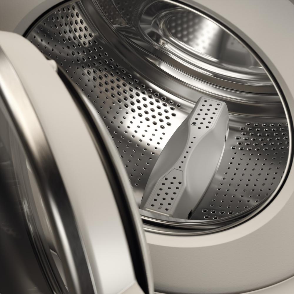Управление электронное: сочетание кнопок и поворотного программатора с FSTN-дисплеем делает настройку интуитивной. Мотор BLDC обеспечивает вращение барабана ActiveDrum до 1600 об/мин, поддерживая классы эффективности — отжима, стирки и энергопотребления на уровне A. Конструктивные особенности включают Quattro Construction™ и дверцу Steel Seal™, а также функцию Quick Pro и программу очистки барабана.