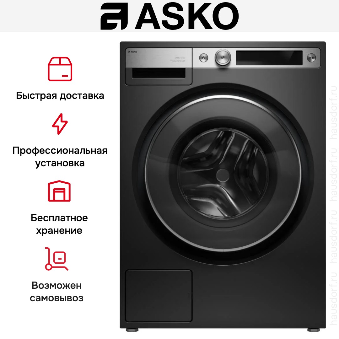 Стиральная машина ASKO W7096XG представляет собой сочетание строгого внешнего вида и продуманной функциональности, созданное для комфорта современной квартиры: черный графитовый корпус и люк с элементами из нержавеющей стали придают изделию благородный, минималистичный облик, который легко впишется в интерьер в стиле Style. В компактном, но вместительном корпусе предусмотрен барабан ActiveDrum из нержавеющей стали объёмом 60 литров, подсвечиваемый внутри для удобства загрузки и контроля за процессом, а дверца Steel Seal™ обеспечивает надежное закрытие. Панель управления выполнена в электронном формате: удобный TFT‑дисплей в сочетании с поворотным программатором и кнопками делает настройку понятной и быстрой, а наличие ночного режима и отложенного старта до 24 часов с шагом 0,5 ч дает гибкость в планировании стирок. Техническая начинка ориентирована на эффективность: бесщёточный двигатель BLDC обеспечивает энергосберегающую и тихую работу, класс энергопотребления A подтверждает экономичность, а впечатляющая скорость отжима 1600 об/мин гарантирует минимальную остаточную влажность при обработке тканей. Безопасность представлена полной защитой от протечек AquaBlockSystem, защитой от перелива и блокировкой панели от детей; система контроля дисбаланса и чугунные противовесы обеспечивают устойчивость при интенсивных циклах, а сливной насос и система слива организуют отвод воды надежно и аккуратно. Функциональный набор охватывает 24 режима, среди которых есть привычные хлопок, смешанные и цветные вещи, а также деликатные программы: ручная стирка, шерсть и специальный режим для рубашек; предусмотрены опции без отжима, экспресс‑циклы и экономичные режимы для ежедневного обновления гардероба, интенсивные режимы с замачиванием и удалением пятен, отдельный цикл для постельного белья и расширенные варианты полоскания и суперполоскания. Дополнительные функции включают ProWash с интеллектуальным управлением, автоматическое дозирование жидкого моющего средства и вспомогательную функцию Dose Assist, которая упрощает применение концентрированных составов; предусмотрена 4‑лог дезинфекция для дополнительной санитарной обработки, программа очистки барабана продлевает срок службы, а интеллектуальный Quick Pro и воздушный душ помогают эффективнее справляться с загрязнениями и освежать вещи. Габариты 85×59.5×57.2 см и высота в упаковке 92×63.6×66.1 см делают устройство удобным для установки в отведенном пространстве, регулируемые ножки позволяют выровнять положение, а длины питающего и сливного шлангов (210, 160 и 150 см) дают свободу монтажа. Конструктивная и эксплуатационная надежность сочетается с возможностью нагрева воды до 90 градусов и мощностью нагрева 2 кВт при подключении 2200 Вт, что делает аппарат готовым к решению самых разных бытовых задач. Для тех, кто ценит сбалансированный дизайн, продвинутые опции и высокий уровень защищенности, этот агрегат представляет собой удачное сочетание стиля и практичности от проверенного производителя.