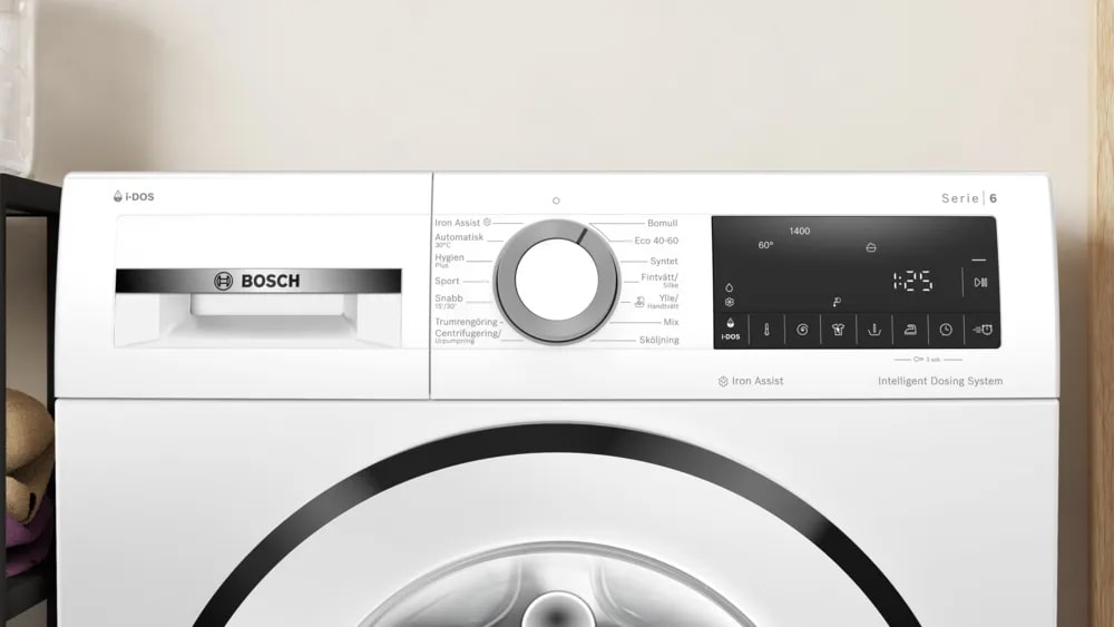 Сенсорная система дозирования моющего средства i-DOS в стиральных машинах Bosch с фронтальной загрузкой служит для точного автоматического определения количества моющего средства. Оптимальный объем порошка или геля для стирки определяется на основании данных, полученных при помощи системы датчиков-сенсоров. В числе основных параметров стирки, рассчитанных при помощи этих датчиков — объем белья в барабане, тип ткани, степень загрязненности белья и жесткость воды.