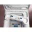 Модели с вертикальной загрузкой отличает надежное крепление барабана на двух валах. Еще одно их отличие — особая конструкция люка: на нем имеется отверстие, закрывающееся на замок. Чтобы получить доступ к барабану, необходимо открыт его и отодвинуть створку.