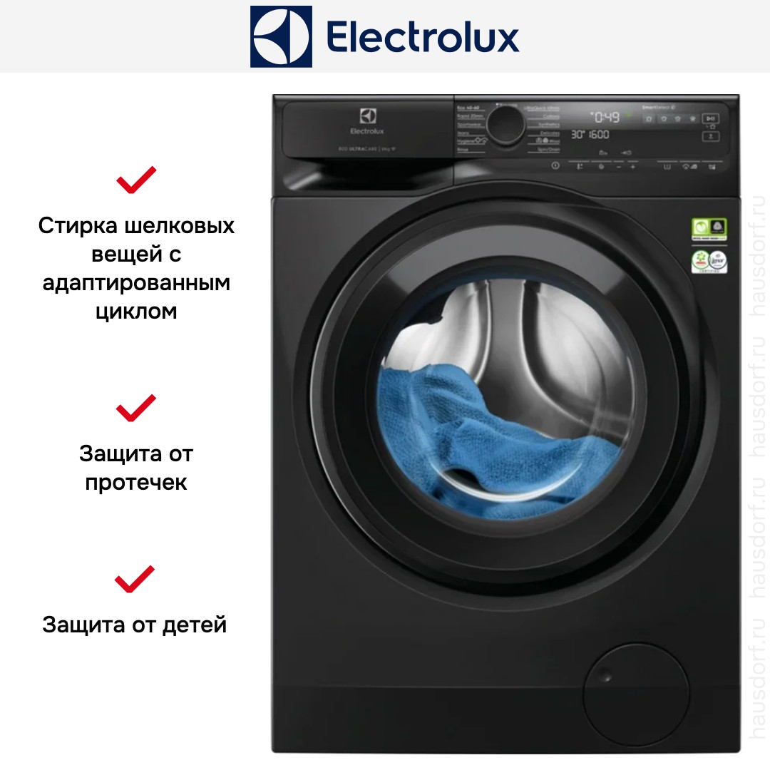 Программа стирки шелковых вещей в стиральных машинах Electrolux разработана с учетом всех особенностей этой деликатной ткани. Стирка производится в холодной воде при температуре 30 градусов и предусматривает особый режим вращения барабана и бережный отжим на скорости не более 400–800 об/мин.