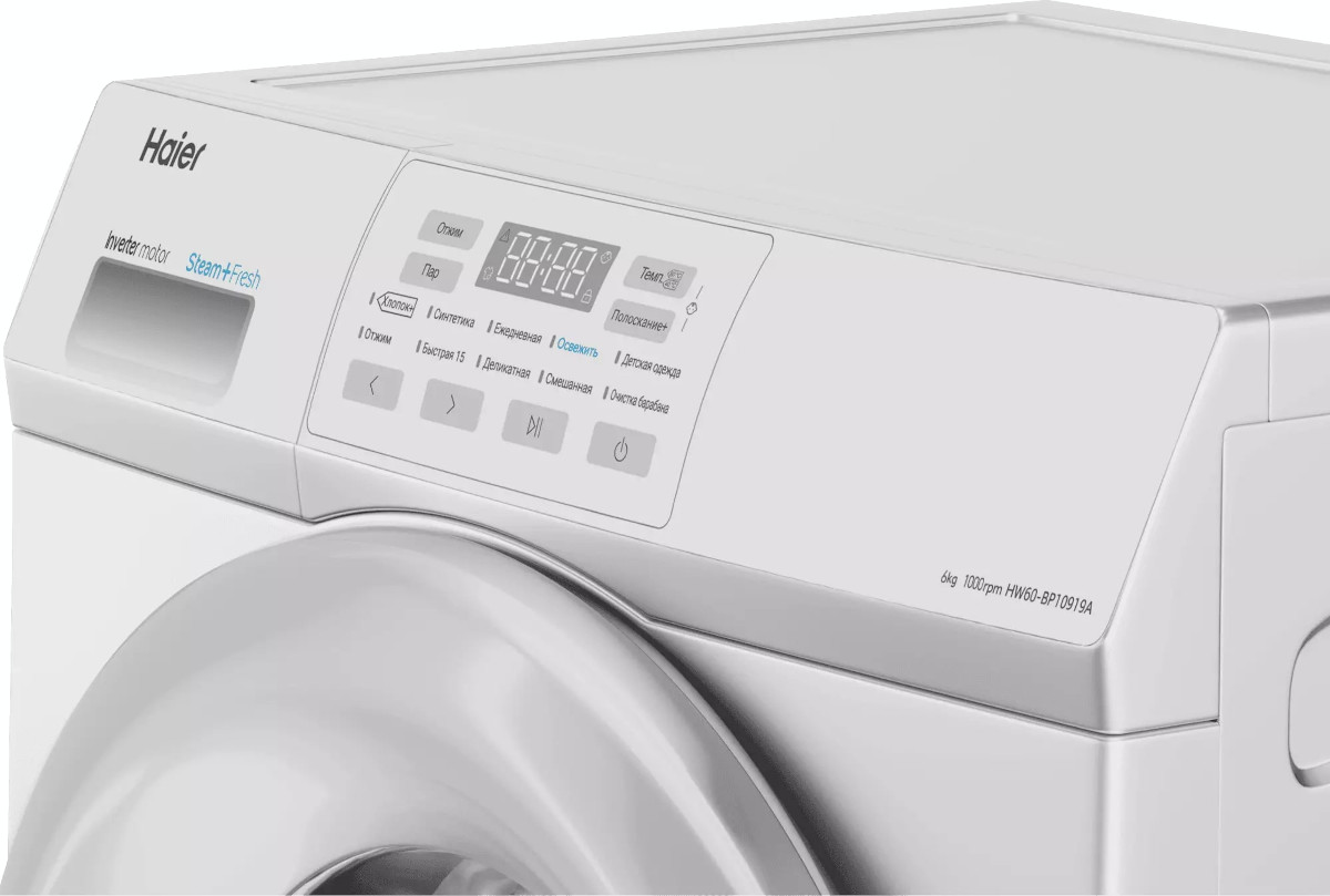 Стиральная машина Хайер HW60-BP10919A выпущена в стандартной конфигурации — устанавливается отдельно, поэтому рекомендуем заранее выделить для нее место в квартире. Благодаря классической фронтальной загрузке она привычна и удобна даже для тех, кто не очень разбирается в технике. За счет небольшой глубины данную модель предпочитают владельцы небольших квартир, студий. В барабан помещается не так много вещей за один раз, но тем, кто не любит копить вещи или просто мало стирает, будет достаточно. Максимальная загрузка: 6 кг.